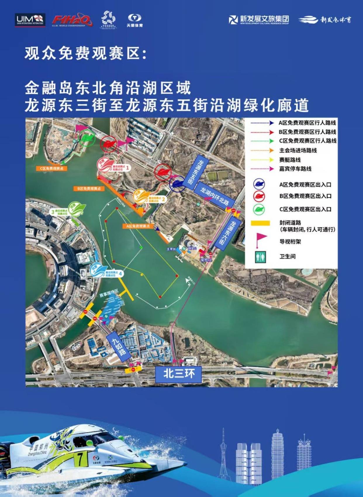 ①A、B、C免费不雅赛区:龙源东三街至龙源东五街沿湖绿化廊说念。