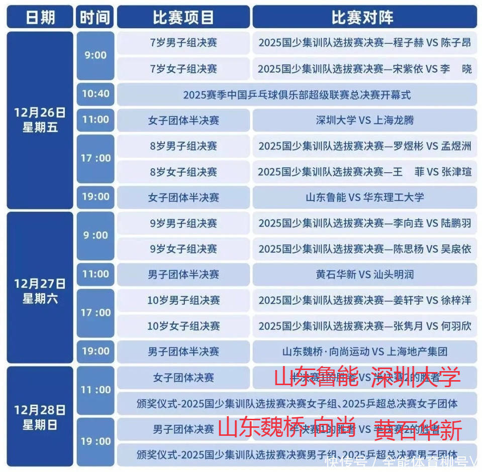 北京技能12月28日音书,2025年乒超联赛总决赛将献艺终极决战。男团决赛,寰宇第一王楚钦领衔的山东魏桥·向尚畅通,迎战穷乏了寰宇第二林诗栋的黄石基地·华新。男团半决赛,伤愈复出的王楚钦以3-0投降赵子豪。